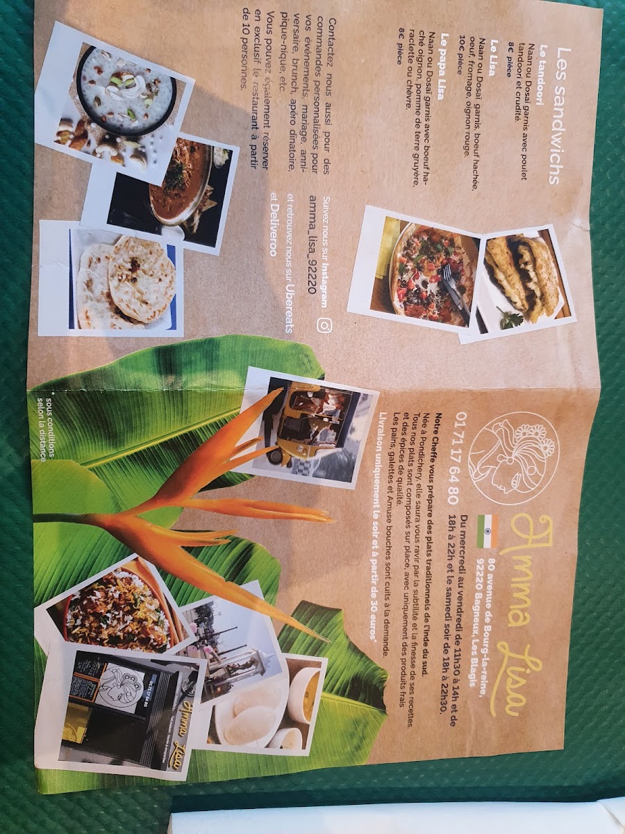 Bienvenue à Amma Lisa, un charmant restaurant indien situé au 80 Avenue de Bourg la Reine, à Bagneux, France. Vous y trouverez un véritable trésor culinaire qui évoque les saveurs authentiques de l'Inde, le tout dans une atmosphère chaleureuse et conviviale.